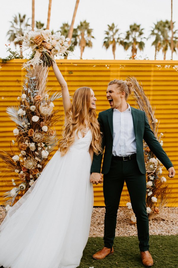 It can be hot and windy depending on time of year. You generally want to avoid the summer and winter months in Palm Springs. At the end of the day, Palm Springs is a desert which means it can get really hot and really really freezing cold and windy! The months with the best weather to get married in Palm Springs are April, May, late September, and October!